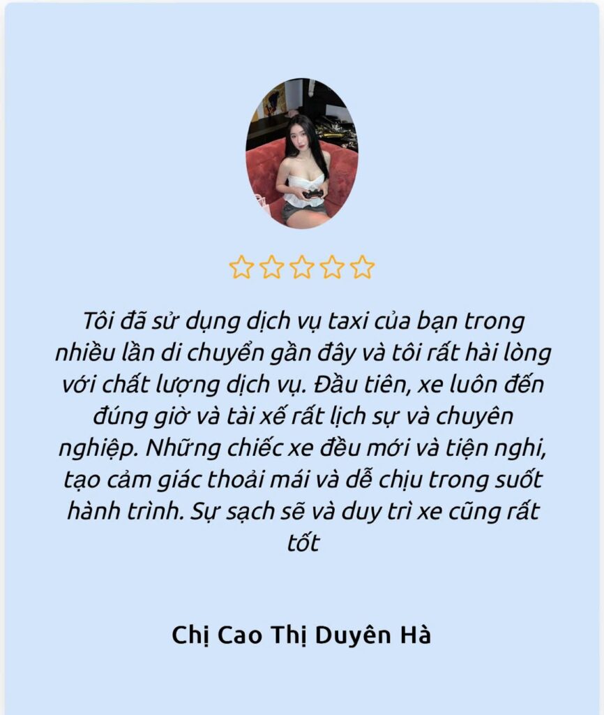 Với phương châm “Khách hàng là tất cả”, “An toàn là trên hết” dịch vụ TAXI BIÊN HÒA ĐỒNG NAI luôn hướng tới tiêu chí chất lượng, an toàn và chuyên nghiệp. Chúng tôi liên tục được người tiêu dùng bình chọn là thương hiệu yêu thích nhất. Và đây là cảm nhận của họ