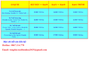 Bảng Giá Dịch Vụ Thuê Xe Tại Taxi Biên Hòa Đồng Nai